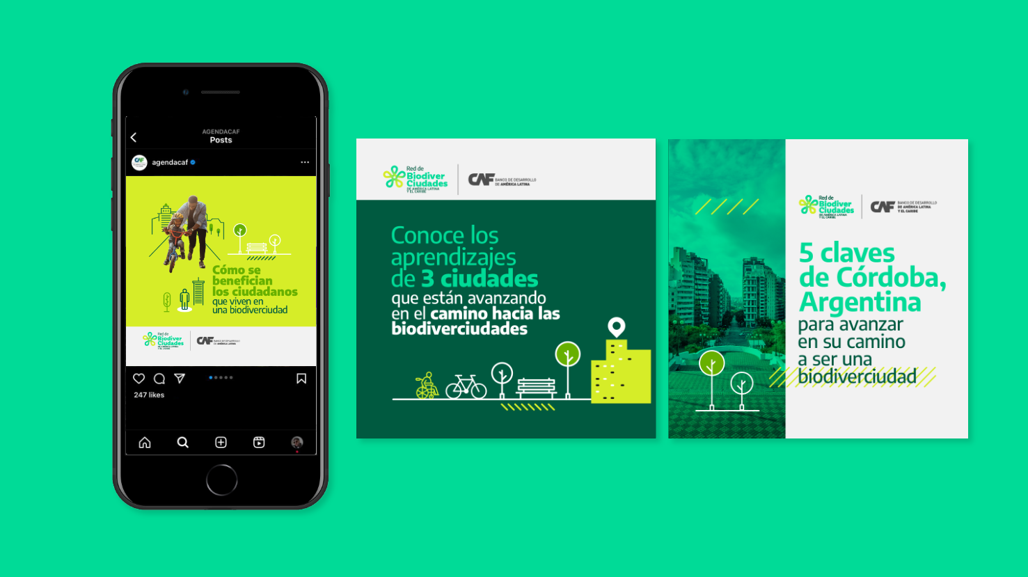 This brand aims to bring together and integrate the cities of Latin America and the Caribbean, CAF creates this sub-brand. For this project, I designed the logo and the graphic universe, and then led a team of designers who would continue its development.